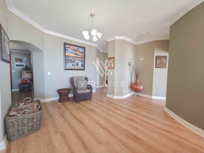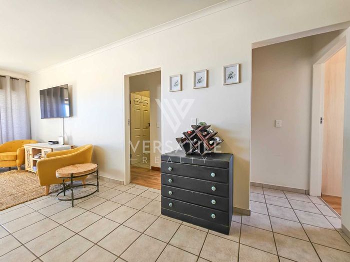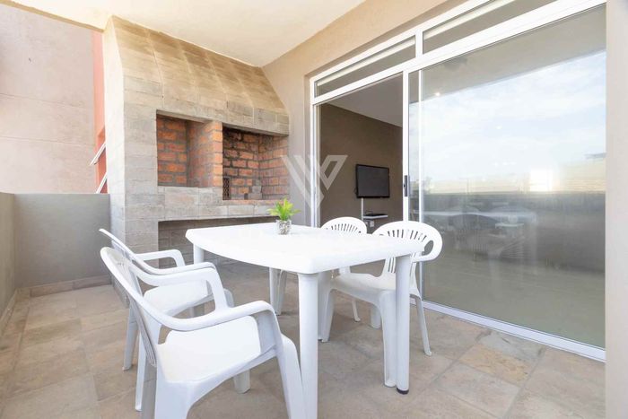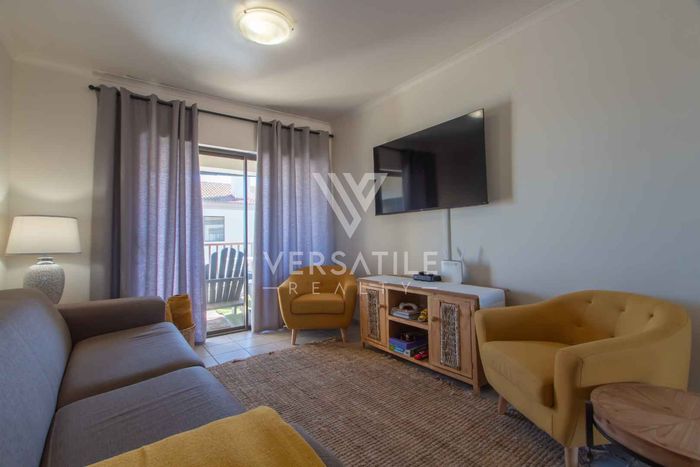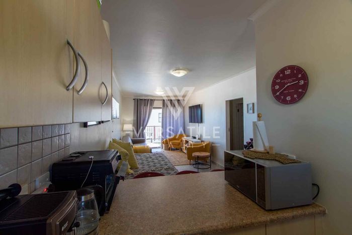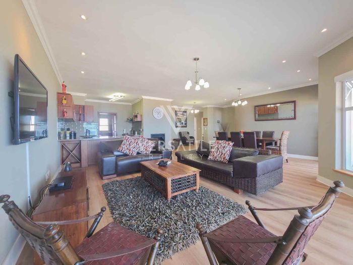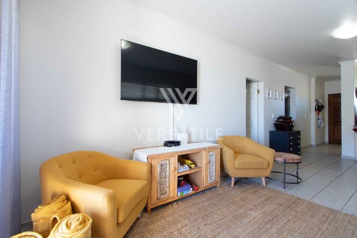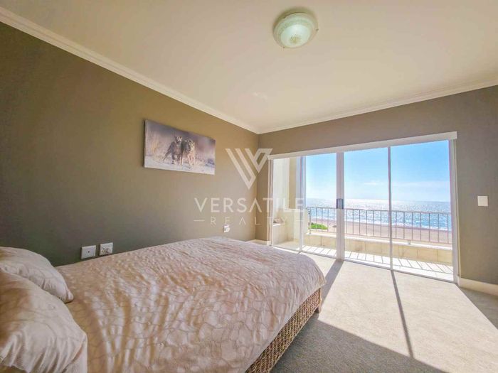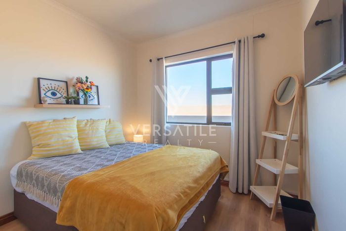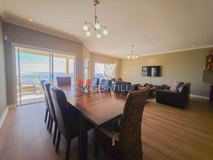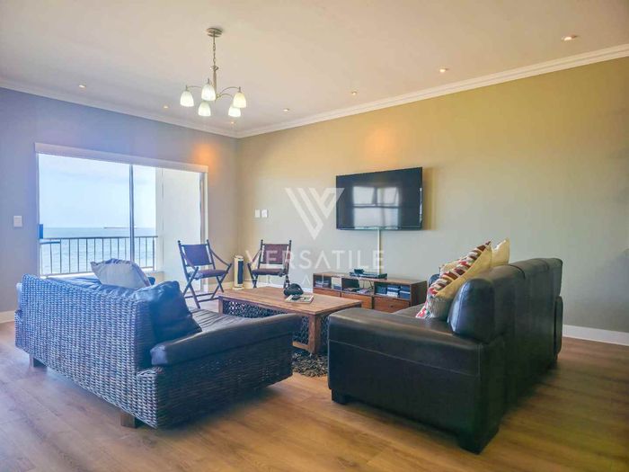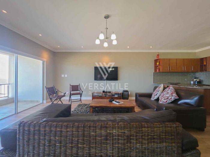 Coastal living with permanent sea views from a large balcony, ideal for relaxed entertaining. Fully furnished open-plan home with indoor fireplace, scullery, three bedrooms, two bathrooms, secure parking.