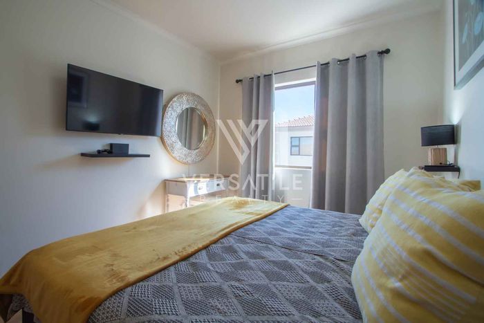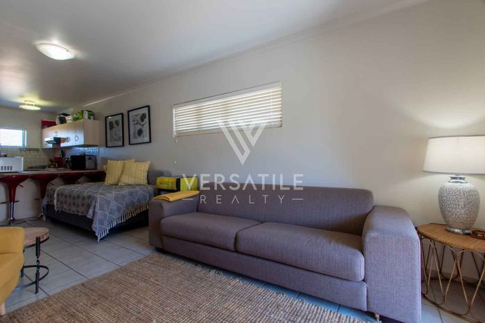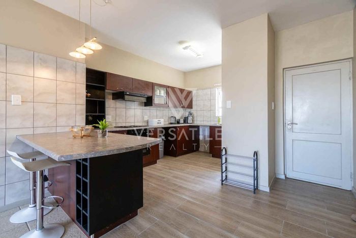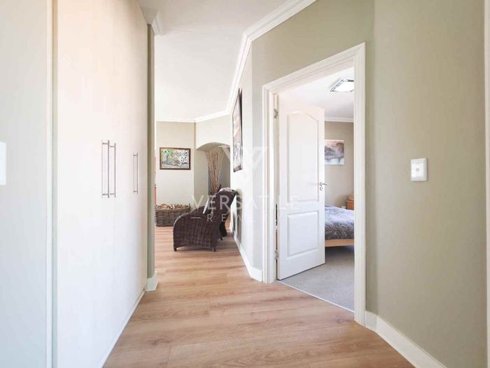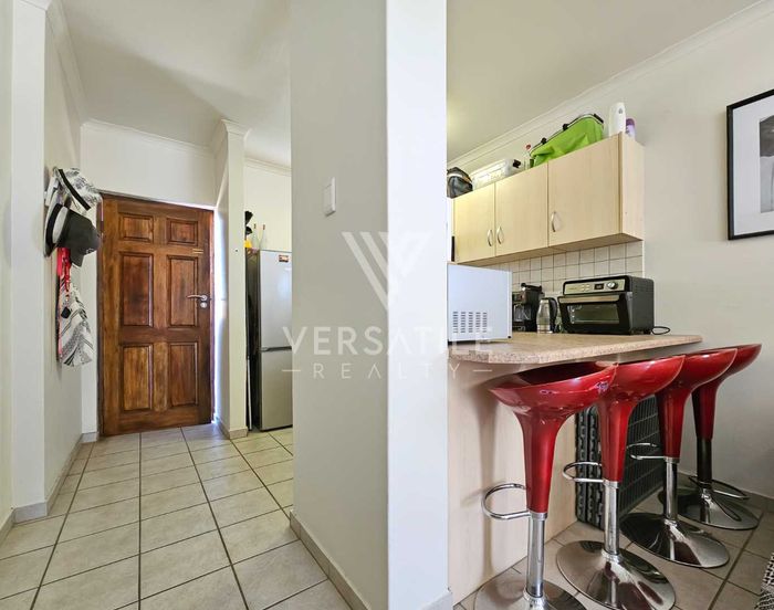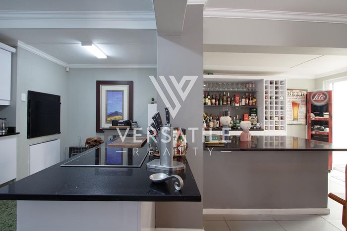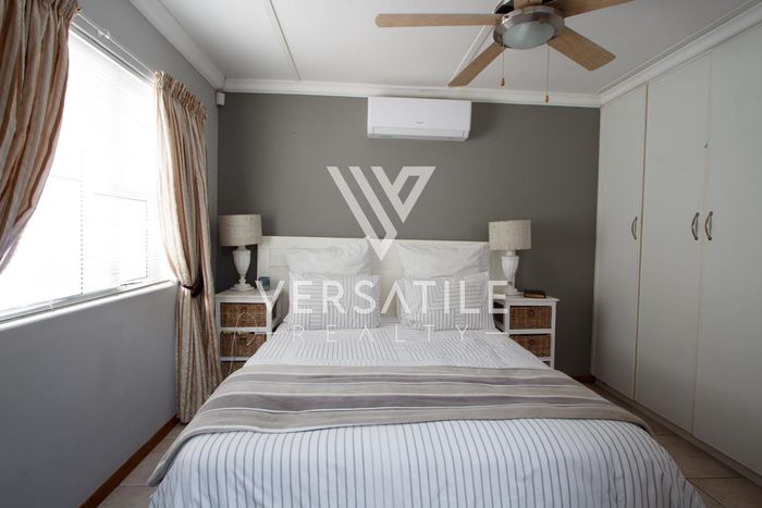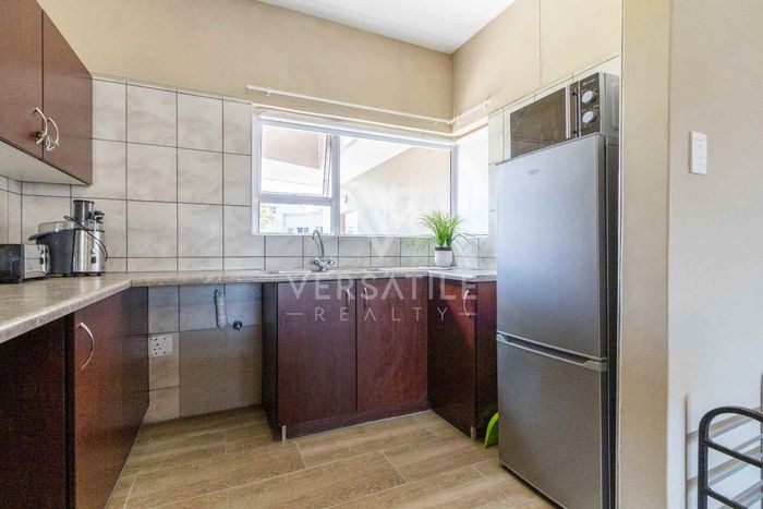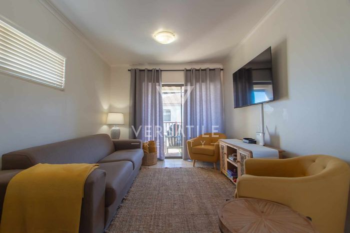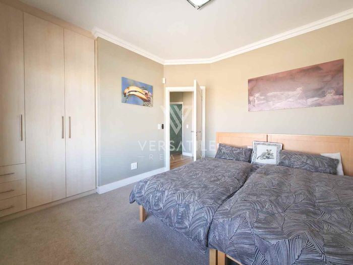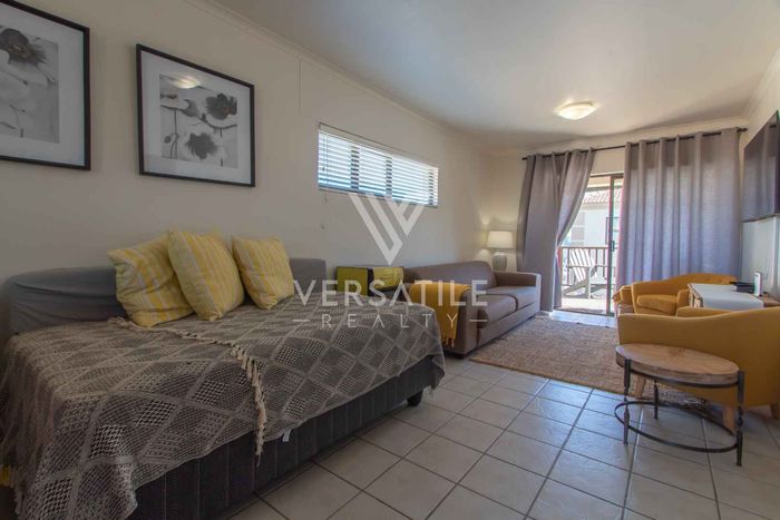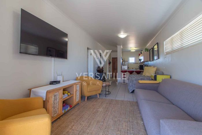 Coastal living with permanent sea views from a large balcony, ideal for relaxed entertaining. Fully furnished open-plan home with indoor fireplace, scullery, three bedrooms, two bathrooms, secure parking.