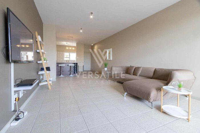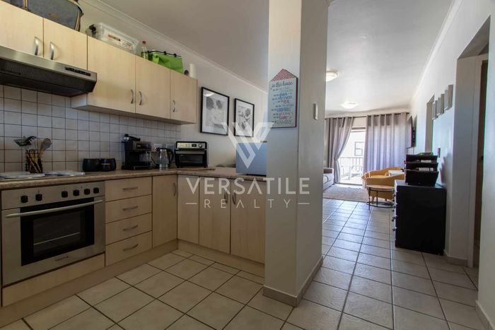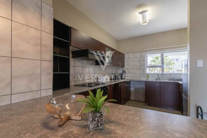 Charming 2-bedroom, 2-bathroom apartment with open-plan kitchen, balcony BBQ, partial sea/desert views, tandem garage, and pre-paid electricity.