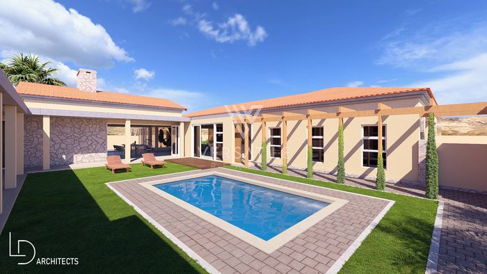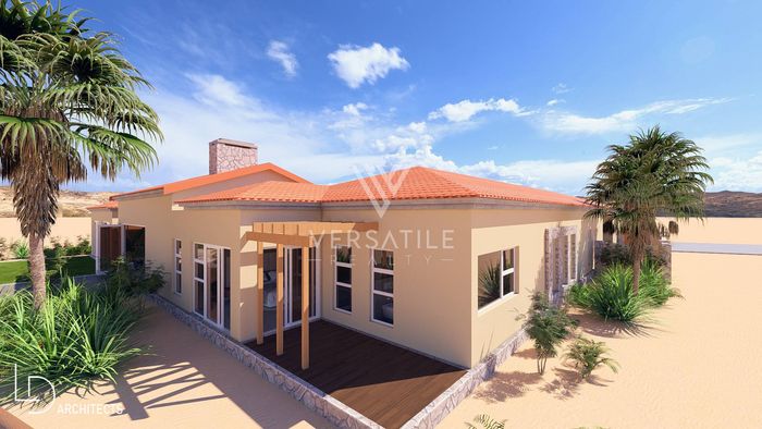 Golf-estate living with desert-meets-green vistas at Rossmund, minutes from Swakopmund. Single-level design with private pool, enclosed indoor BBQ entertainment area and separate one-bedroom flat.
