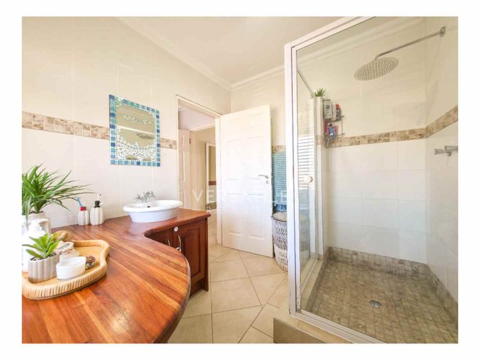 Contemporary family living in a peaceful neighbourhood, perfect for entertaining with an indoor braai and exposed trusses. Open-plan kitchen, study, three bedrooms, three and a half baths, double garage.
