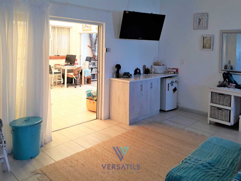 You want to live in this enlightened home, called Agapé, where natural light pour into the 3 spacious open plan living areas, (one with indoor braai) 4 bedrooms (3 en-suite), open plan kitchen (chef will not miss anything), hidden scullery, laundry room and 2 double garages (1 with pit). Can be divided into spacious 1 bedroom flat and 3 bedroom house by closing off a sliding door.