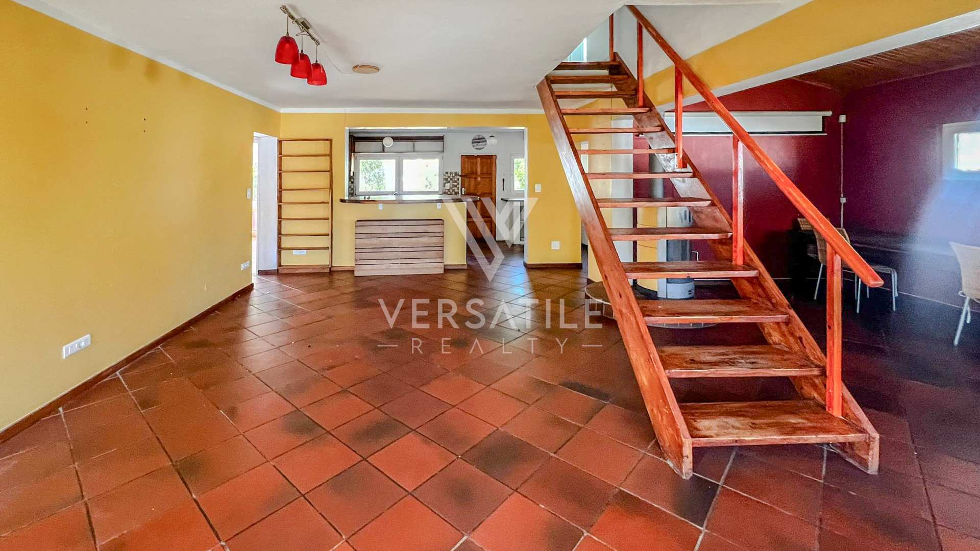 Upstairs leads to the main bedroom with ensuite, and large balcony area.