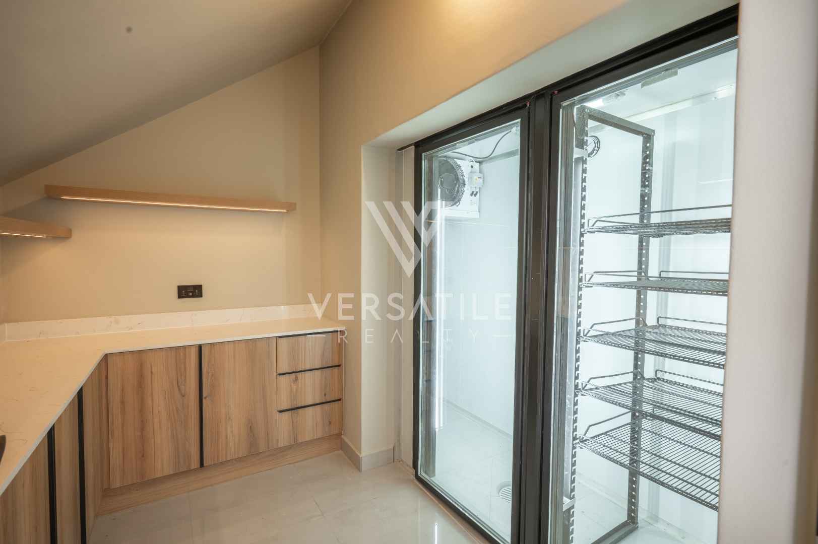 Entertainment area with indoor BBQ, guest toilet & balcony access