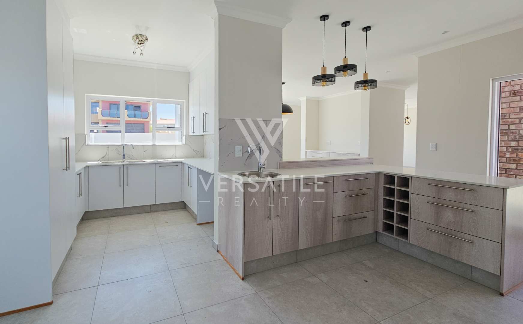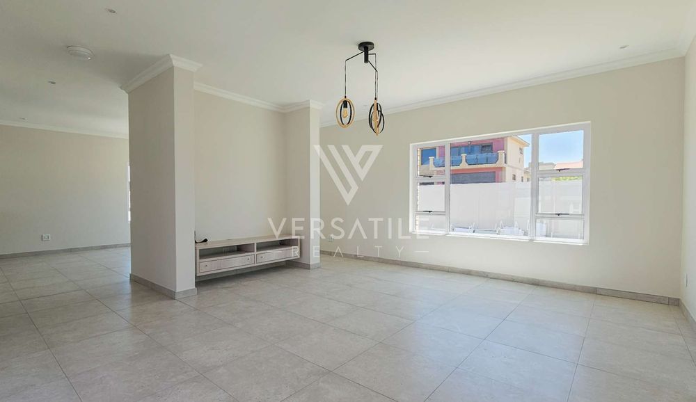 - Living & Dining Area: A spacious open-plan area featuring large windows, a floating TV cabinet in the lounge, and a dedicated buffet cupboard in the dining room.
