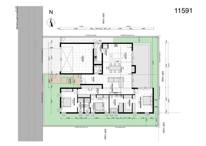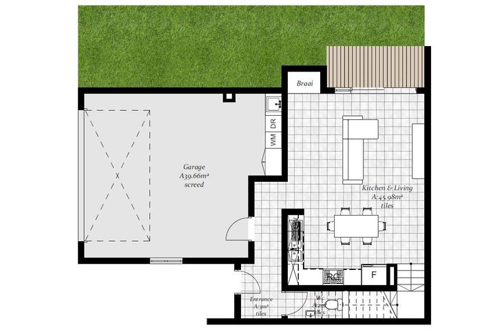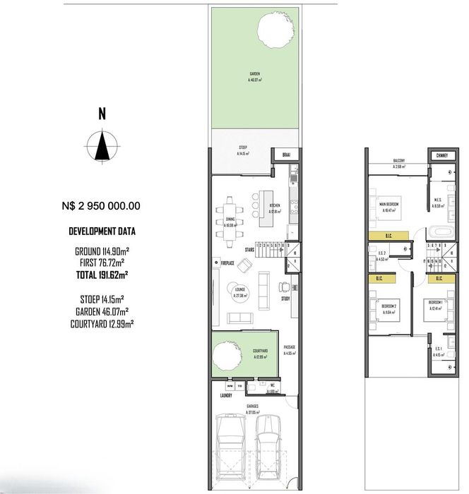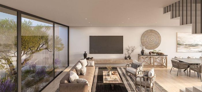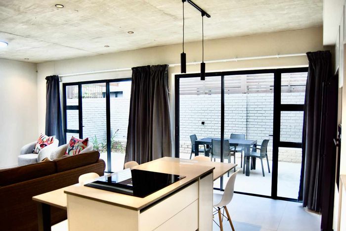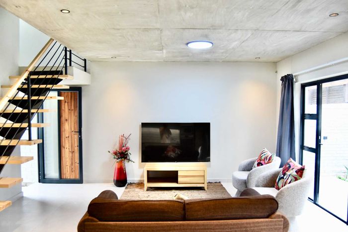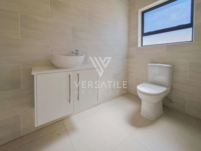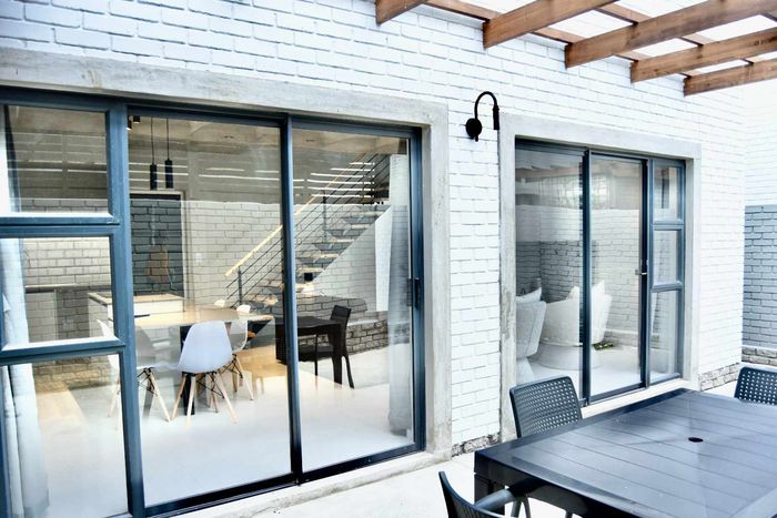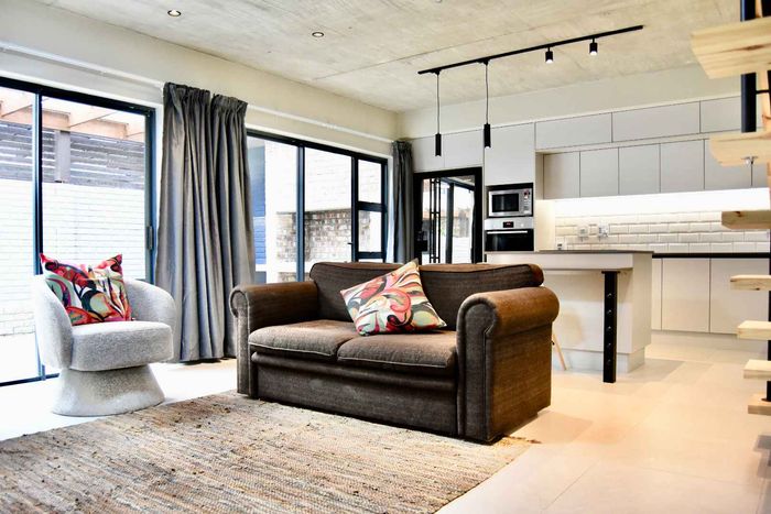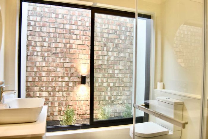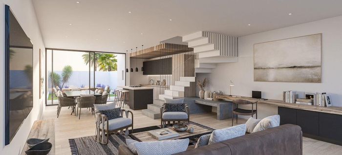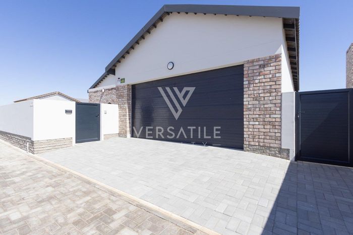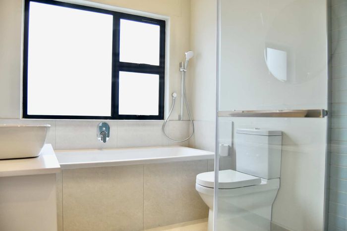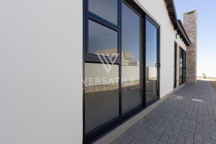 Contemporary family living in a peaceful neighbourhood, perfect for entertaining with an indoor braai and exposed trusses. Open-plan kitchen, study, three bedrooms, three and a half baths, double garage.