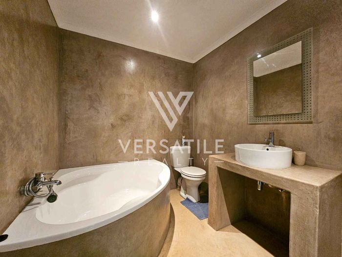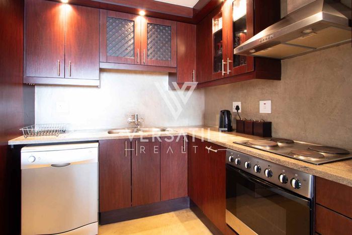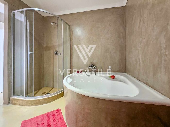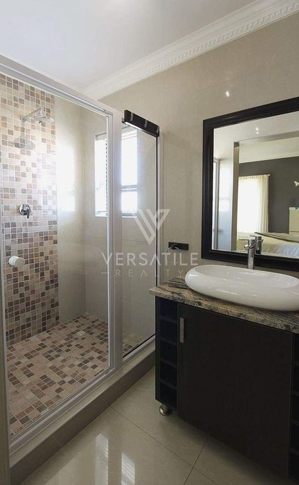 4 bedrooms, 4 en-suite bathrooms, 1 garage, 1 open parking, 200 m² beachfront unit with wooden deck.