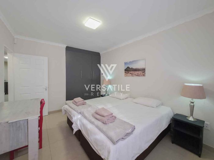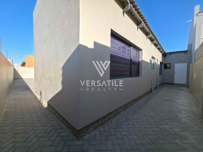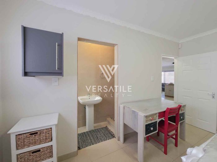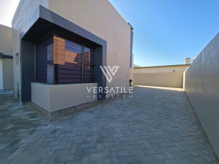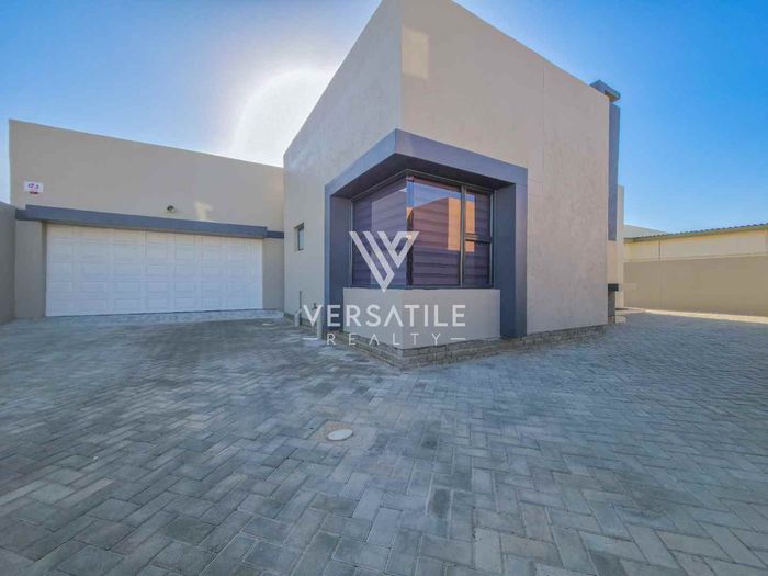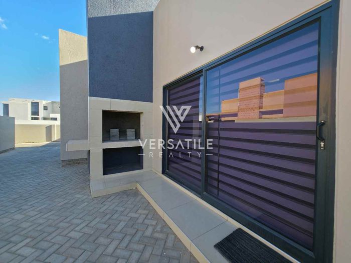 Corporate-friendly living in Walvisbay’s Fairways, steps from business hubs and transport; open-plan lounge/kitchen, outdoor BBQ and secure double garage — three bedrooms, two bathrooms.